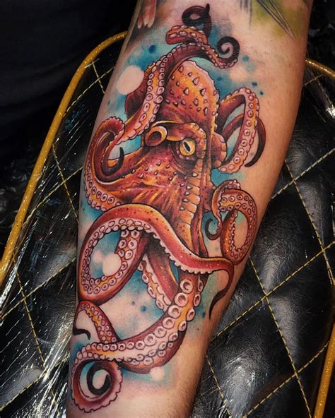 Colored Octopus Tattoo. It’s spare, but looks fresh on the skin through effective mini shade effects of hatches,. Web a killer black line feature.