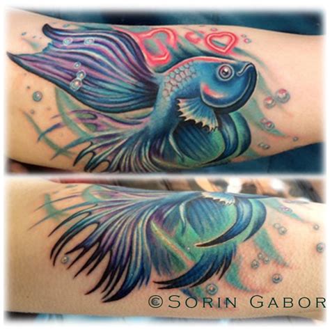 Realistic feminine color beta fish memorial tattoo by Sorin Gabor