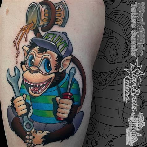 New School Grease Monkey Tattoo by the best color tattoo artist in CT