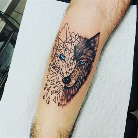 Half Wolf Tattoo. Web as far as placements go for cool wolf tattoo designs, traditional positions such as the upper arm, chest tattoo, and. Even with just half a face, you can still show power from this wolf tattoo.
