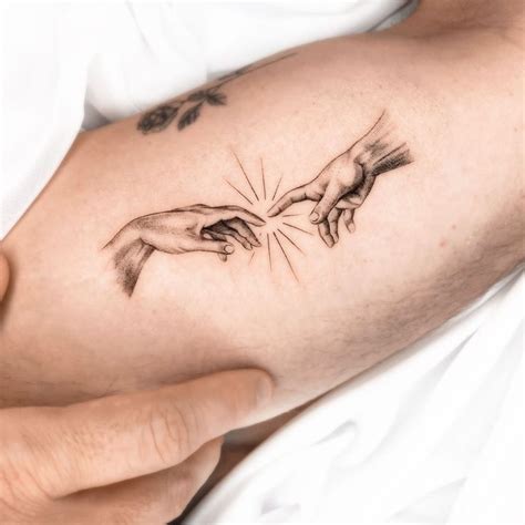 Michelangelo's David tattoo on the right thigh. David tattoo, Hand