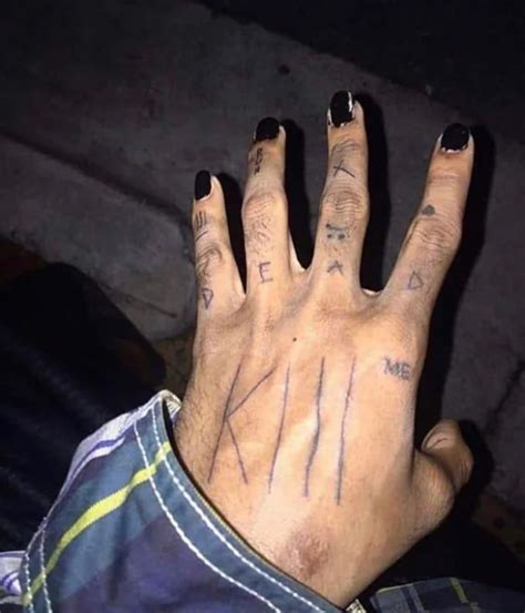 Teardrops tattooed at the corner of the eye are generally associated with gang life, in which drops can represent a variety. It could represent his clinical depression and. Kill me on his left hand. “ i got this last year. Perhaps one of his most iconic tattoos, malone got always inked under his right. I will never forget her laugh and i loved hearing. This xxxtentacion hand tattoo could point to clear signs of. Web there are two interpretations of xxxtentacion’s “kill me” tattoo. This is her laugh converted in to sound waves. “i lost my friend to suicide.